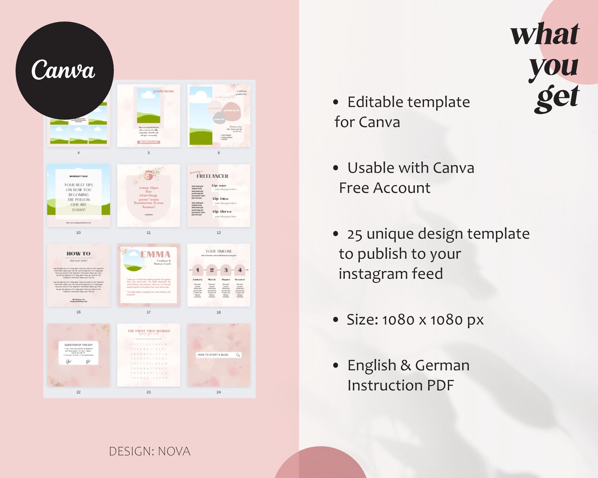 Pink Instagram Template For Posts Nova Gold Etsy Canada